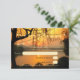 Une carte de réponse de mariage romantique avec des guirlandes lumineuses sur un arbre surplombant l'eau au coucher du soleil. Dans l'arbre, vous pouvez voir deux petits oiseaux amoureux chantant une chanson d'amour.