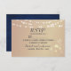 Élégante et rustique, cette carte de réponse de mariage présente des guirlandes lumineuses chaudes sur un fond beige doux avec des accents floraux dorés délicats. En harmonie avec la suite de mariage bleu marine et guirlandes, elle comprend les préférences de repas et une mise en page de réponse classique pour des réponses faciles des invités. Une touche charmante pour les mariages d'hiver, les célébrations de grange ou les réceptions du soir.