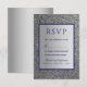 Carte de réponse de mariage simple, moderne, élégante, avec reflets argentés et bleu royal.