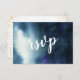 Carte de réponse élégante pour votre mariage sur le thème bleu marine et or ! Cette carte a un fond aquarelle peint à la main de couleur ombrée bleu marine. Il est écrit "rsvp" dans une police de caractères moderne. Au dos, il y a des paillettes dorées des deux côtés de la carte, et les invités peuvent écrire leur nom, le nombre de participants et leur choix de repas pour la réception. Les textes sont facilement personnalisables en ligne.