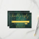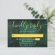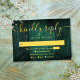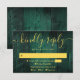 Une carte de réponse de grange bohème en bois rustique vert émeraude avec vos détails dans une typographie moderne en or. Conçue par Thisisnotme©