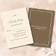 Élevez votre papeterie de mariage chrétien avec cette carte de réponse de mariage personnalisée, Minimal Taupe, dotée d'un design minimaliste et linéaire ainsi que du monogramme élégant du couple. Conçue pour le couple moderne, cette carte de réponse met en valeur une typographie profonde et chic taupe ainsi qu'une police de caractères script gracieuse, magnifiquement contrastée sur un fond crème classique. La mise en page simple mais raffinée, avec un verset biblique émouvant au verso, complète une esthétique de mariage moderne, offrant aux invités un moyen élégant de répondre. Parfaite pour être associée à une suite complète d'invitations de mariage minimalistes, cette carte de réponse allie sophistication intemporelle et charme contemporain pour votre jour spécial centré sur Dieu.
