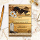 Carte d'invitation de réponse de mariage avec deux chevaux romantiques avec un chapeau, une botte de cowboy, des marguerites et de la dentelle sur un fond en bois rustique. Vous pouvez personnaliser, faire glisser, faire pivoter ou supprimer des champs de texte, ainsi que modifier les polices et plus encore. Pour toutes les options, choisissez "personnaliser" ou "personnaliser". Cette carte correspond aux invitations.