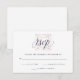 Cette carte de réponse de mariage simple et élégante présente un diamant en faux or rose et une typographie moderne en bleu minuit.