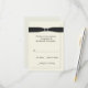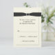 Elégante carte RSVP de réponse de mariage faite en crème, avec des graphiques d'un cadre à l'allure biseautée autour de la zone de texte et un ruban noir, avec une boucle de diamant étincelante. La taille est assez petite pour s'adapter à toutes les tailles d'invitation populaires. Customisez le texte en fonction de vos besoins.