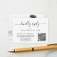 Carte de réponse en ligne de mariage élégante avec la mention "répondre aimablement" dans un script chic avec fioritures. Entrez l'adresse de votre site web de mariage pour créer un code QR pour que vos invités scannent pour répondre en ligne. Le verso présente votre photo superposée avec vos prénoms et date de mariage réunis par un cœur.