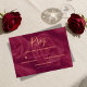 Créez une première impression durable avec cette élégante carte de réponse de mariage bordeaux et or, conçue pour donner le ton à une célébration intemporelle et romantique. Dotée d'une palette de couleurs bordeaux profond luxueux, d'un fond floral rose doux et d'accents or raffinés, cette invitation allie sophistication classique et élégance moderne. Parfaite pour les mariages formels, vintage ou romantiques, ce design met magnifiquement en valeur votre date spéciale tout en ajoutant une touche de luxe que vos invités adoreront. Entièrement personnalisable, cette carte "Save the Date" sur le thème des roses est idéale pour les couples qui prévoient un mariage automnal ou hivernal chic, une cérémonie de jardin romantique ou une soirée événementielle glamour.