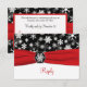 Cette carte de réponse aux flocons de neige noir et blanc a un ruban imprimé rouge et un médaillon de flocon de neige dessus. Elle correspond à l'invitation de mariage présentée ci-dessous. Si vous avez besoin d'autres articles assortis dans ce design, ou si vous souhaitez une combinaison de couleurs différente, veuillez envoyer votre demande par courriel à niteowlstudio@gmail.com.