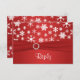 Cette carte de réponse de mariage avec des flocons de neige rouges et blancs comporte un ruban IMPRIMÉ et une broche de bijou en diamants qui correspond à l'invitation de mariage présentée ci-dessous. Si vous avez besoin d'autres articles assortis dans ce design, veuillez envoyer votre demande par courriel à niteowlstudio@gmail.com. Les articles assortis sont présentés ci-dessous.