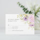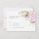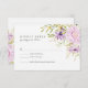 Carte de réponse de mariage moderne et élégante avec un bouquet floral de marguerites aquarelles douces aux nuances de lilas et de violet blush, et de blanc, avec des feuilles botaniques luxuriantes aux nuances d'amour. Personnalisez vos détails de mariage en noir lisse, accentué d'une belle calligraphie moderne.