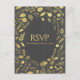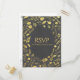 Carte de réponse de mariage floral gris charbon et or. Articles assortis disponibles.