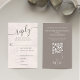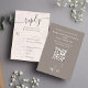 Cette carte de réponse de mariage rose associe l'élégance et la fonctionnalité à une option de réponse par code QR pour une commodité moderne. Conçue avec des accents floraux aquarelles et une section classique de choix de repas, elle mélange une typographie simple avec une écriture calligraphique élégante pour un look intemporel. Parfaite pour les couples recherchant un design classe et sophistiqué pour compléter leur suite de papeterie de mariage.