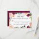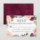 Complétez votre collection avec cette carte de réponse de mariage coordonnée, dotée d'une bordure florale aquarelle romantique en bourgogne, rose et verdure. Comprend un espace pour les noms, la réponse de présence et une ligne pratique pour le décompte des invités. Une mise en page claire et lisible la rend parfaite pour les célébrations de mariage d'automne, de jardin ou de vignoble.