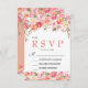 Belle carte de réponse de mariage floral rose pêche pastel.