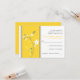 Cette carte de réponse de mariage florale moderne jaune doré, gris et blanc serait parfaite pour un mariage de printemps ou d'été. Elle correspond à l'invitation de mariage présentée ci-dessous. Le texte et le papier sont entièrement personnalisables. Elle est présentée ici sur du papier de base. Je ne recommande pas d'utiliser du papier doré métallisé ou argenté car ils modifieraient considérablement la couleur de la carte. Si vous préférez une couleur ivoire au lieu du blanc, le papier métallisé champagne ou le papier feutré donneront ce résultat. Le papier lin donnera un aspect blanc très net qui sera également très beau avec cette carte. ***VEUILLEZ NOTER que si vous changez la police ou la taille de la police, cela peut modifier l'impression de votre carte. Elle s'imprimera telle que vous la voyez sur votre écran, donc si vous avez des problèmes d'alignement ou de taille, veuillez me contacter pour obtenir de l'aide avant de commander. Je ne verrai pas votre invitation une fois que vous l'aurez commandée, et Zazzle ne modifiera rien (fautes de frappe, alignement, etc