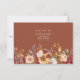 Cette carte de réponse de mariage présente un riche design floral terracotta et orange brûlé, idéal pour les couples qui planifient une célébration chaleureuse et bohème. La disposition équilibrée garde les réponses claires tout en ajoutant des détails botaniques romantiques. Parfait pour les mariages d'automne, les lieux rustiques et les thèmes terreux modernes. La palette de couleurs est en accord avec les tendances émergentes 2025–2026 qui mettent l'accent sur la profondeur, la chaleur et les tons naturels. Entièrement personnalisable pour s'adapter à votre style et à votre formulation d'événement. Coordonne parfaitement avec les invitations, les bandes de ventre et les accessoires de faveur assortis.