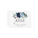 Une belle composition florale estivale orne cette carte de réponse de mariage. Des fleurs d'hortensia bleu clair, des gardenias bleu foncé et des roses et fleurs rose saumon sont nichées dans un feuillage vert foncé et des feuilles d'eucalyptus. Cette carte est incluse dans la collection de mariage Carmen's Floria. Elle contient des modèles DIY abordables que vous pouvez utiliser pour concevoir votre papeterie de mariage ou pour créer des pancartes de bienvenue et des décorations de table pour votre cérémonie et votre réception. Si vous avez besoin d'aide pour trouver des articles assortis, n'hésitez pas à me contacter. Je m'appelle Nelda et serais ravie de vous aider !