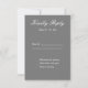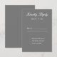 Avec un schéma de couleurs gris et blanc chic, cette carte de réponse de mariage ajoute une touche de sophistication à votre papeterie de mariage. Ses lignes épurées et son design discret offrent un complément parfait à un thème de mariage moderne ou classique. Un espace suffisant est prévu pour que vos invités répondent, alliant élégance et commodité. Personnalisez-la pour refléter votre style de mariage unique et créez un lien durable avec vos invités.