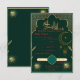 Complétez votre suite de papeterie de mariage islamique avec cette élégante carte de réponse verte et dorée. Avec un fond émeraude luxueux et des détails arabesques dorés complexes, cette carte de réponse complète parfaitement votre invitation de Nikah ou de Walima.