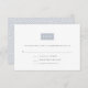 Élégantes, chic et modernes, ces cartes de réponse de mariage ultra-modernes présentent "RSVP" sur un élément rectangulaire dans une ardoise grise discrète. Ajoutez la date de réponse souhaitée, les termes d'acceptation et de refus, ainsi qu'un champ pour le nombre de participants en lettrage sans serif moderne gris charbon. Les cartes sont imprimées au verso avec un motif grec moderne facultatif.