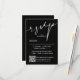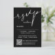 Ces cartes de réponse de mariage modernes en noir et blanc sont parfaites pour que vos invités les remplissent et vous les renvoient par la poste ou pour scanner le code QR pour répondre sur votre site web de mariage. ÉLÉMENTS ASSOCIÉS dans notre collection.