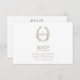 Couronne de feuilles ovale vert olive et blanc avec options de réponse et de repas. Design de feuilles simple autour de vos initiales de monogramme. Cartes d'invitation et autres articles assortis ainsi que des options de couleur sont disponibles. © Dessin et design de feuille originale de Sarah Trett pour www.mylittleedenweddings.com sur Zazzle.