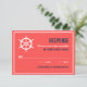 Carte de réponse de mariage bleu marine foncé et corail avec une illustration de gouvernail blanc. Ceci est parfait pour les mariages sur le thème nautique ou les mariages sur le thème de la mer et de l'océan.