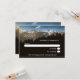 Carte de réponse avec une peinture de montagnes enneigées avec des pins. Le devant comporte une image de fond de texte séparée pour que vos invités puissent écrire plus facilement. Vous pouvez faire glisser ou supprimer cette image selon vos besoins.