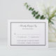 Une belle carte de réponse avec une palette de couleurs élégante de gris charbon sur un carton blanc perle. Cette carte est livrée avec le choix des entrées, mais peut être supprimée si elle n'est pas nécessaire, il suffit de cliquer sur "personnaliser davantage", de cliquer sur le champ de texte et d'appuyer sur supprimer.
