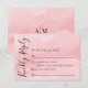 Cette carte de réponse RSVP simple et élégante présente un design aquarelle minimaliste avec des polices noires. Toutes les couleurs, y compris l'aquarelle rose, peuvent être modifiées, car le design aquarelle est placé sur un fond coloré. Le recto présente "Répondez s'il vous plaît" en écriture élégante sur le côté, avec un espace pour les réponses de vos invités. Au verso se trouve un monogramme simple pour les initiales du couple. Cette carte de réponse moderne et discrète s'intègre parfaitement à tous les thèmes de mariage et à toutes les saisons de l'année. Vous pouvez également modifier les couleurs des polices pour les adapter à vos préférences. L'élégance chic et minimaliste de cette carte RSVP garantit qu'elle complète une variété de thèmes de mariage, ajoutant une touche de classe à votre jour spécial. Carte de réponse de mariage simple et élég