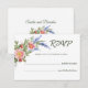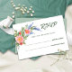 Carte de réponse de mariage rustique à la lavande et aux fleurs sauvages. Un style rustique avec de la lavande et des fleurs sauvages est parfait pour un mariage d'été. La lavande, le cynorhodon et l'eucalyptus forment une belle couronne florale. Des éclaboussures d'aquarelle complètent la composition et lui donnent un charme particulier.