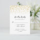 Cette carte de réponse de mariage comporte des confettis dorés en points sur le dessus et est agrémentée d'une calligraphie élégante. Cette carte propose une personnalisation pour une réponse et des choix de repas.