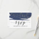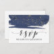 Cette carte de réponse RSVP de site web de mariage à l'aquarelle bleu marine et or est parfaite pour un mariage élégant. Ce design abstrait de nuit étoilée présente un pinceau dramatique d'aquarelle bleu marine surligné de magnifiques paillettes dorées fausses. Personnalisez la carte de réponse en ligne avec la date limite de réponse RSVP et l'adresse du site web de mariage. Si vos invités n'ont pas besoin de mot de passe de site web, vous pouvez remplacer le texte par un message court et doux pour vos invités ou une méthode alternative de réponse RSVP.