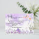 Éblouissez vos invités avec la carte de réponse DIY Elegant papillon or et violet. Ce design époustouflant présente de beaux papillons monarques violets légers voletant gracieusement parmi des accents floraux lavande rustiques et or rose. Parfaite pour les mariages élégants, les baby showers, les quinceañeras, les anniversaires sweet 16 et plus encore, cette carte combine le charme de l'aquarelle lilas avec une touche sophistiquée de calligraphie moderne.