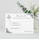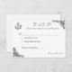 Design présente un pur blanc arrière - plan à élégant texte couleur argent affiché dans le format traditionnel pour une carte de réponse Mariage catholique. L'en-tête est affiché au centre supérieur dans une police nuptiale élégante juste au-dessus de la ligne de demande, également dans la même police élégante. En haut à gauche se trouve l'image de Notre-Dame de Fatima comme ovale et bordée de roses et de verdure délicats. Des images de roses et de verdure sont également affichées dans les coins supérieur droit et inférieur gauche. Les noms de la mariée et de la mariée sont présentés en bas à droite. Reverse représente l'image de deux roses délicats en bas à droite. Toutes les images sont de couleur argent. Conçu pour coordonner avec la "Suite Mariage catholique Vierge Marie".
