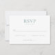 Cette élégante carte de réponse de mariage présente un design minimaliste avec un espace négatif généreux, créant un look épuré et sophistiqué. Le texte vert menthe doux contraste magnifiquement avec le fond gris clair, améliorant la lisibilité tout en conservant un charme discret. La mise en page comprend des champs personnalisables pour les noms et les nombres de participants, assurant une personnalisation sans compromettre le style. Parfaite pour transmettre la formalité et l'anticipation, cette carte est idéale pour les couples qui cherchent une touche moderne et pourtant classique pour leur jour spécial.
