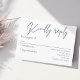 Cette carte de réponse élégante et moderne comporte une écriture gris foncé sur fond blanc. Nous avons utilisé une combinaison de lettrage classique élégant, associé à des lettres de calligraphie modernes. Une belle carte de réponse simple et personnalisable, conçue pour le couple moderne recherchant l'élégance et la simplicité. Cette carte magnifiquement conçue présente un look épuré et sophistiqué dans un design intemporel.