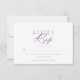 Une carte de réponse stylée et minimaliste avec une typographie élégante dans des tons lavande doux. Ce design simple mais sophistiqué permet aux invités de répondre sans effort tout en complétant n'importe quel thème de mariage ou d'événement. Parfaite pour les mariages modernes et classiques, les douches de mariée ou les rassemblements formels, cette carte de réponse dégage un charme et un raffinement intemporels.