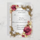 Jolie roses rouges et cadre motif feuille or. Cette belle carte de mariage RSVP/réponse est prête à être personnalisée pour votre journée de mariage spéciale. Personnalisez la carte en changeant le texte dans les champs avant et arrière. Vous pouvez modifier le style de police, la taille et la couleur, ainsi que le type et le style de papier.