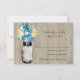 Carte de réponse RSVP parfaite pour un mariage de style champêtre ou peut-être que vous aimez simplement les pots Mason ! Pot Mason suspendu à un crochet rempli de fleurs sauvages champêtres. Un fond en bois de grange de couleur beige rustique avec le pot Mason suspendu et des fleurs sauvages dans des tons de bleus et de jaunes champêtres. Si vous avez des questions sur ce design ou si vous souhaitez une modification de couleur, veuillez m'envoyer un e-mail à paula@labellarue.com. Consultez également les cartes de RSVP, de RÉCEPTION et de PLACEMENT DES INVITÉS pour assortir !