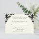 Cette carte de réponse en damassé noir et ivoire correspond à l'invitation de mariage présentée ci-dessous. Le texte et le type de papier sont personnalisables. Si vous avez besoin d'autres articles assortis, veuillez envoyer votre demande par courriel à niteowlstudio@gmail.com.