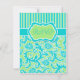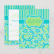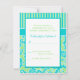 Carte de réponse en damassé rayé bleu vert blanc