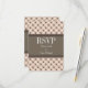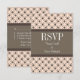 Carte de réponse Mariage Fancy Lattice tendance et chic avec un cercle élégant et un motif clouté au diamant sur un arrière - plan pêche dynamique avec une large bordure brune bicolore. Cette élégante carte RSVP est parfaite pour un mariage moderne. Facile à customiser, il suffit d'ajouter les détails de votre mariage dans les champs de texte fournis. Cliquez sur "Customiser" pour trouver d'autres options de personnalisation.