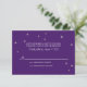 Carte de réponse RSVP parfaite pour un mariage champêtre avec le thème du pot Mason ! Un fond Royal Purple (02:6:9) avec des lucioles fantaisistes. Cela correspondra à mes invitations de mariage en pot Mason. Si vous avez des questions sur ce design ou si vous souhaitez une modification de couleur, veuillez m'envoyer un courriel à paula@labellarue.com. Vérifiez également les cartes d'INVITATION, de RÉCEPTION et de PLACEMENT DES INVITÉS pour une correspondance parfaite !