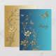 Cette luxueuse carte de réponse sarcelle et or avec des fleurs et des papillons correspond à l'invitation de mariage présentée ci-dessous. Elle est particulièrement magnifique sur le papier métallisé champagne comme montré ici. Le texte et le choix du papier sont personnalisables. Si vous avez besoin d'articles assortis dans ce design, veuillez envoyer votre demande par courriel à niteowlstudio@gmail.com.