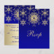 Cette carte de réponse moderne et festive avec des flocons de neige imprimés de couleur bleu marine et bleu roi avec des paillettes dorées correspond à l'invitation de mariage présentée ci-dessous. Elle est présentée ici sur du papier de base. Elle est facilement personnalisable avec vos propres informations. ***Soyez prudent si vous changez le type de papier. Le papier doré métallisé est très foncé et ne donnera pas de bons résultats. Tout le texte est personnalisable, ainsi que le choix du papier. Si vous avez besoin d'autres éléments pour rendre votre événement exceptionnel, tels que des cartes de numéro de table, des étiquettes ou autocollants de faveur, des timbres, des enveloppes ou des cartes de placement, etc., veuillez envoyer votre demande par courriel à niteowlstudio@gmail.com.