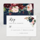 Carte de réponse florale bleu marine et rose Bourg