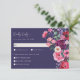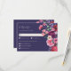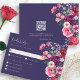 Carte de réponse florale Moody. Cette carte de réponse élégamment conçue assure une expérience fluide pour les invités où les détails réfléchis se rencontrent avec la commodité moderne. Le fond bleu marine profond rehausse la richesse des florales à l'aquarelle, tandis que le devant comporte un espace pour que les invités indiquent leur présence et leurs préférences de repas, ce qui facilite la planification. Au dos, un code QR permet aux invités de répondre en ligne de manière rationalisée, ce qui garantit des réponses rapides et faciles. Entièrement personnalisable, vous pouvez personnaliser le libellé, les styles et les tailles de police pour correspondre à votre thème de mariage. Associez cette carte de réponse à la collection complète pour une suite magnifiquement coordonnée qui allie l'élégance classique à la fonctionnalité moderne, ce qui rend la planification du mariage plus fluide que jamais. REMARQUE : le