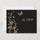 Cette carte de réponse florale dorée ambre et noire présente de magnifiques papillons en cuivre et or ainsi que des vignes fleuries (VEUILLEZ NOTER que les fleurs et les papillons ne sont PAS en relief ou en gaufrage de quelque manière que ce soit), qui correspondent à l'invitation de mariage illustrée ci-dessous. Certains papiers peuvent altérer la couleur du design, alors soyez prudent si vous choisissez l'un des autres types de papier. AUSSI, si vous redimensionnez la carte, ou si vous changez les polices, ou la taille de la police, une partie du design et/ou du texte risque d'être coupée. Tout s'imprimera exactement comme vous le voyez sur votre écran. Je ne verrai pas votre carte, et Zazzle ne corrigera RIEN (fautes de frappe, désalignement, etc.). Le texte et le papier sont entièrement personnalisables. ****VEUILLEZ NOTER que la petite carte de réponse (3,5"x5,0") est la SEULE carte qui rentre dans l'enveloppe pour l'invitation carrée de 5