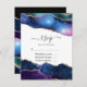 Carte de réponse en pierre précieuse agate pailletée fausse Galaxie avec une typographie élégante écrite à la main, personnalisable selon les spécificités de votre événement.